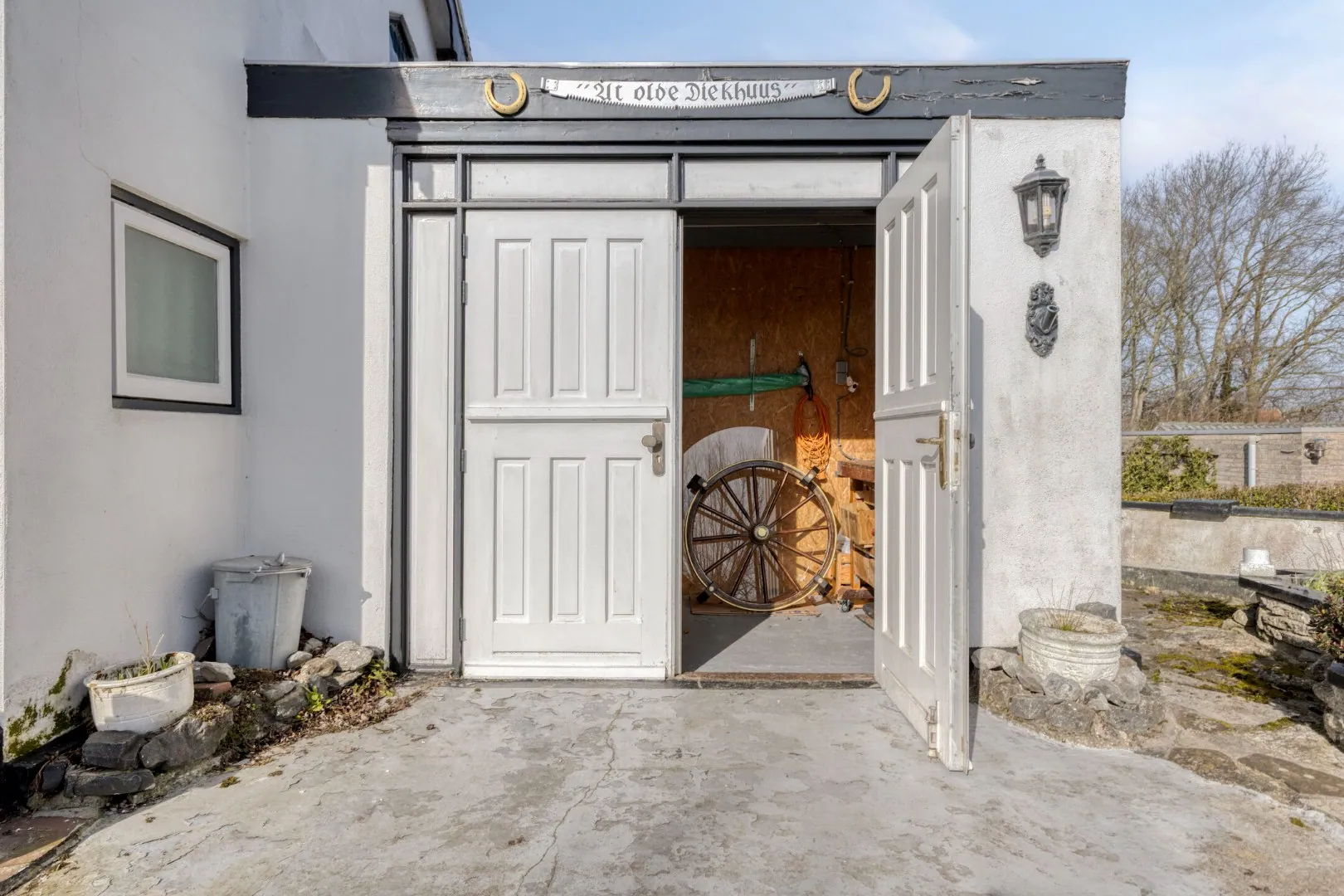 Aangrenzend aan de voorzijde van de woning bevindt zich nog ‘n extra berging voorzien van dubbele toegangsdeur. Geschikt om bijvoorbeeld fietsen of surfplank te stallen.