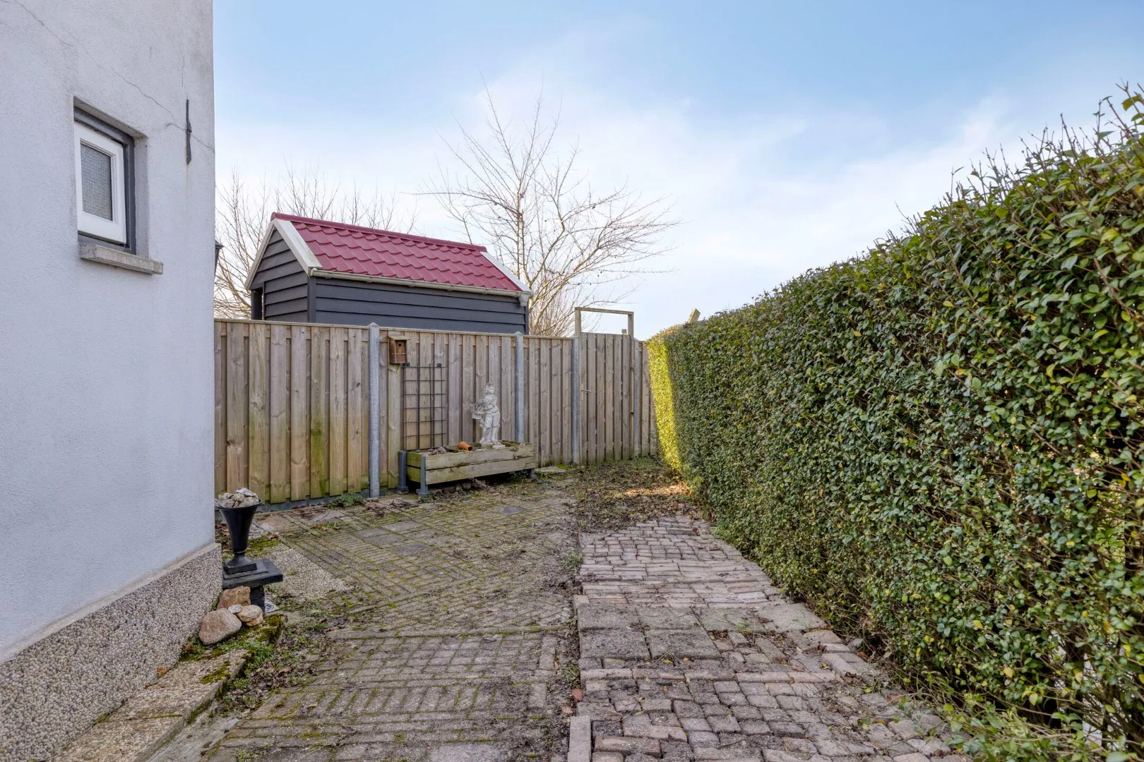 - voor/zij -en achtertuin, goed onderhouden met div. bestrating en beplanting;