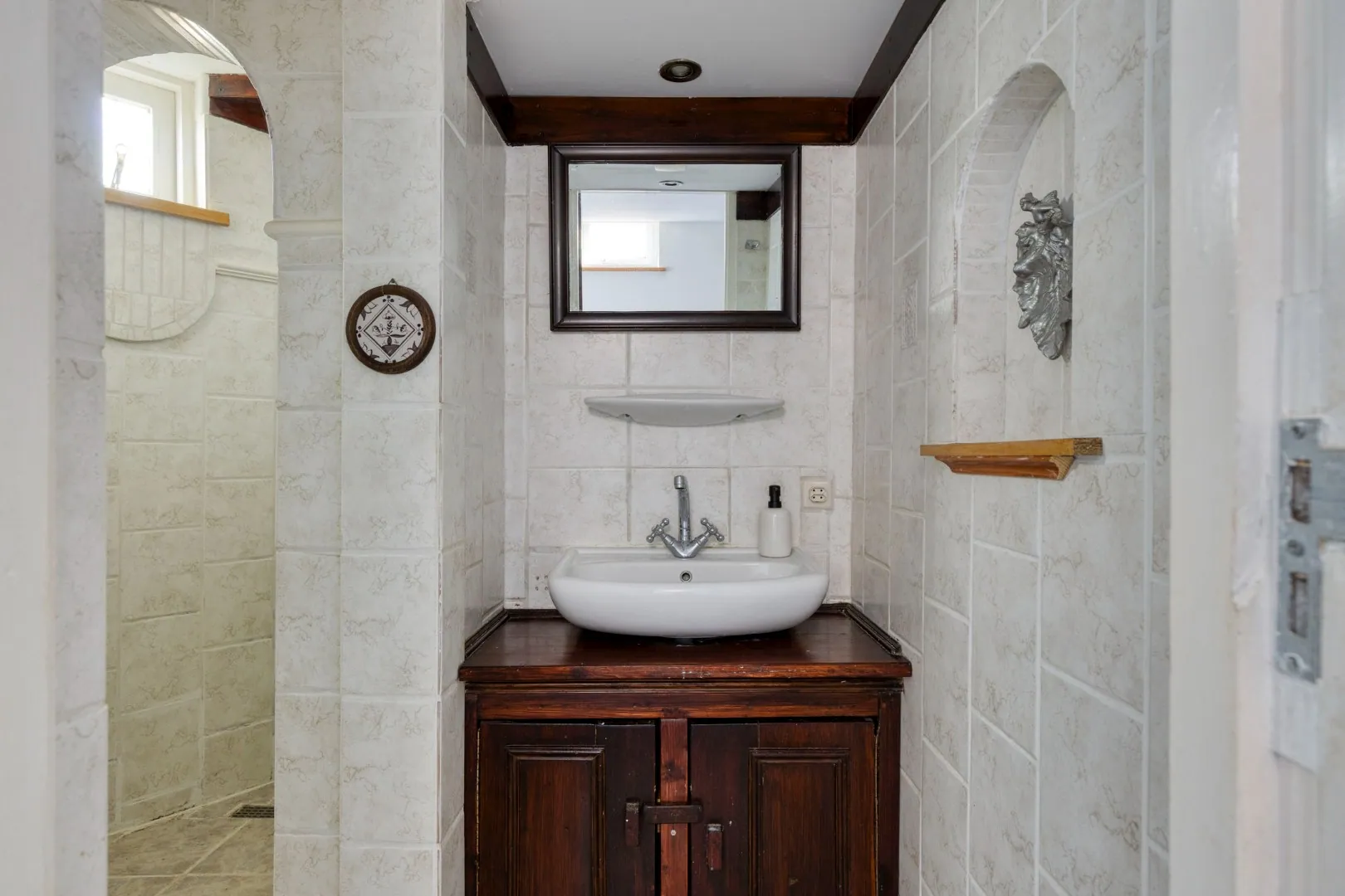 • Badkamer met hangtoilet, wastafelmeubel en inloopdouche