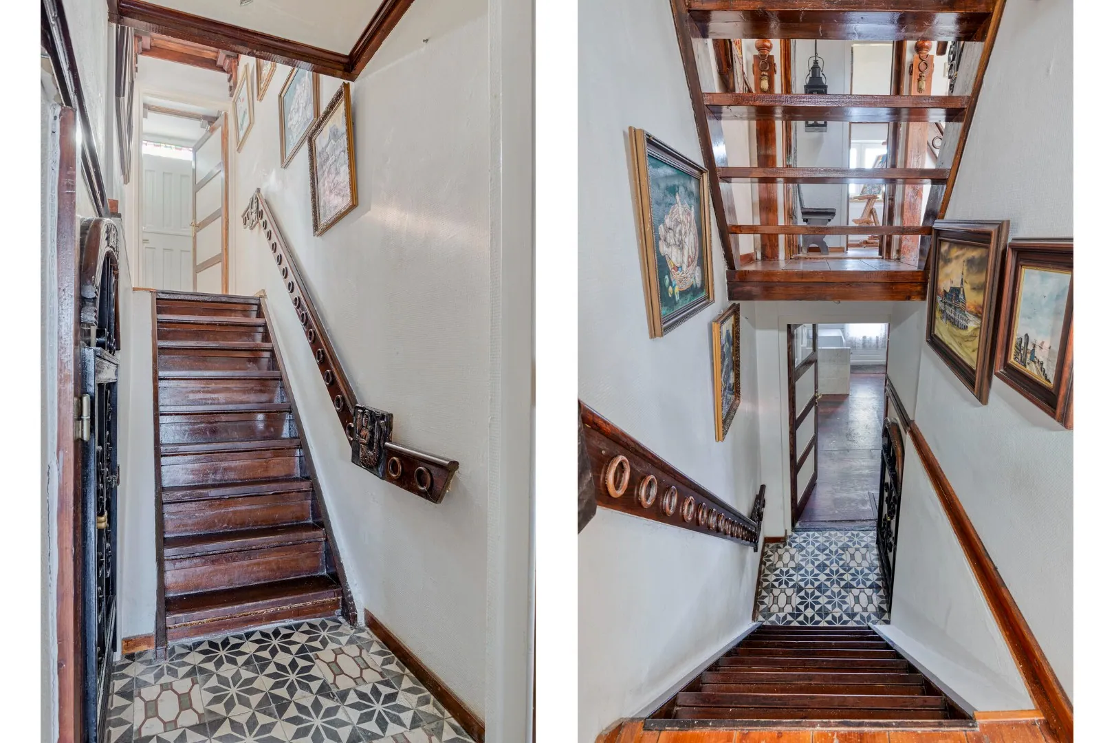 Vanuit de woonkamer is via trapopgang zowel de tussenverdieping als de 1e verdieping bereikbaar.