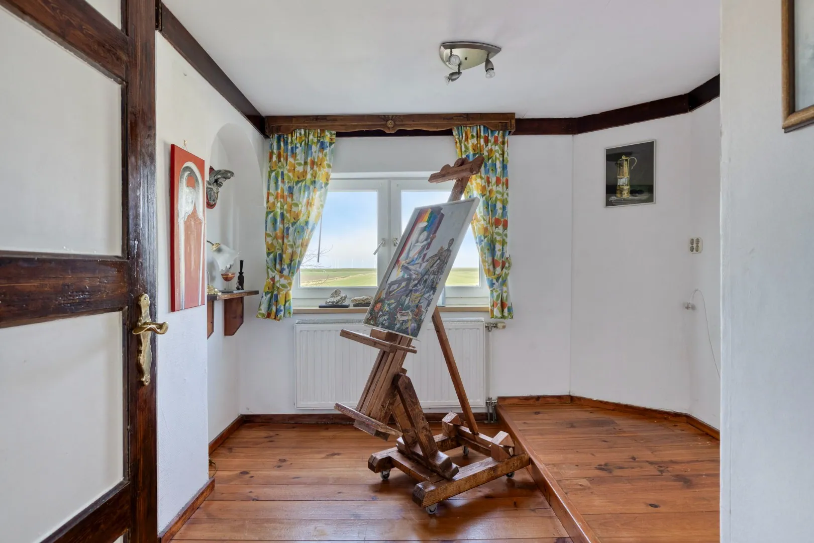 Zowel slaap-/hobbykamer als keuken bieden een prachtig uitzicht over de achterliggende polder.