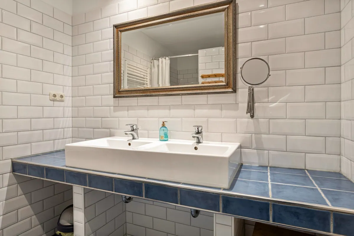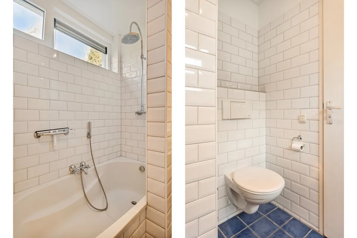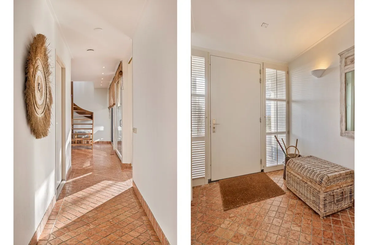 Entree/hal met meterkast en toegang tot 2 badkamers waarvan badkamer 1 voorzien van hangcloset, dubbele wastafel en inloopdouche en badkamer 2 voorzien van ligbad, 2e hangcloset en dubbele wastafel.