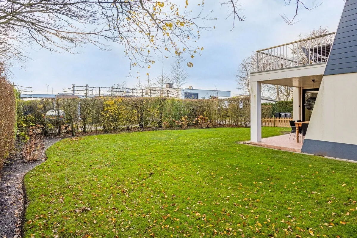 Privé oprit voor meerdere auto’s bij de woning maar ook bij de garage. De tuin ligt rondom de woning en heeft o.a. een terras, kinderspeelplaats en buitendouche.