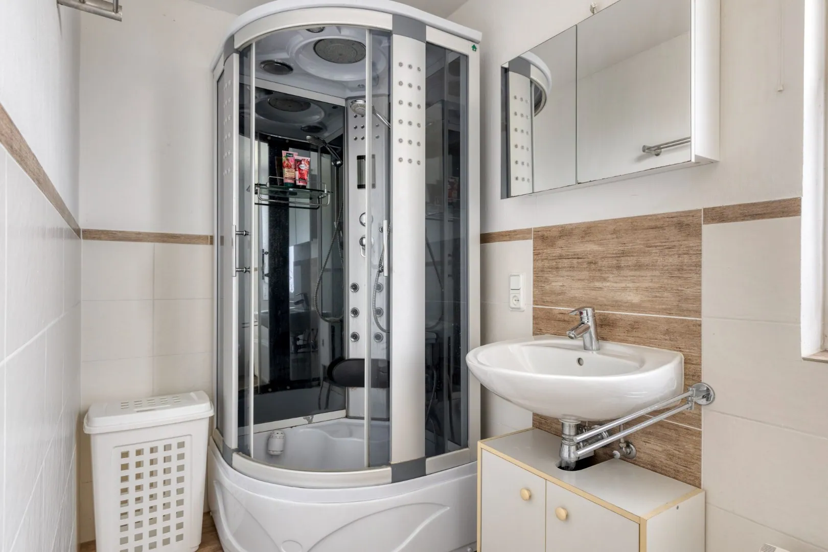 Bergingskast met cv-installatie en wasmachine.