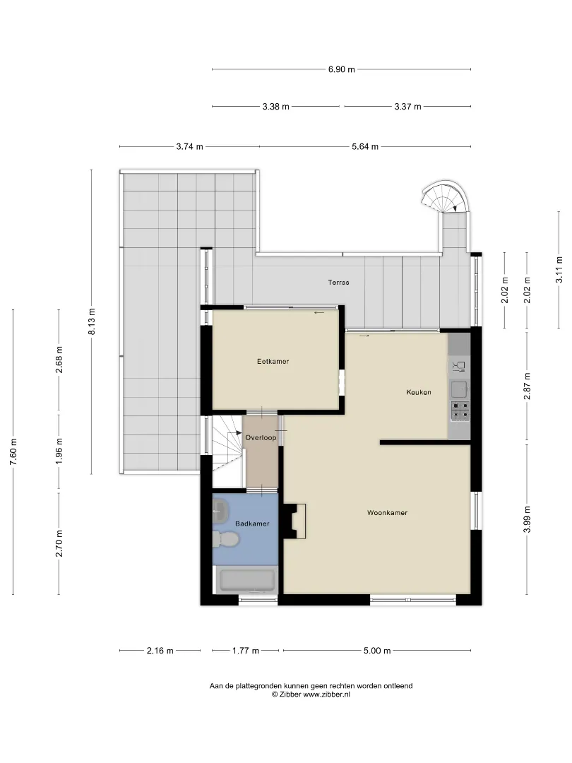 De 2 achterslaapkamers hebben ieder een deur naar het achtergelegen terras.