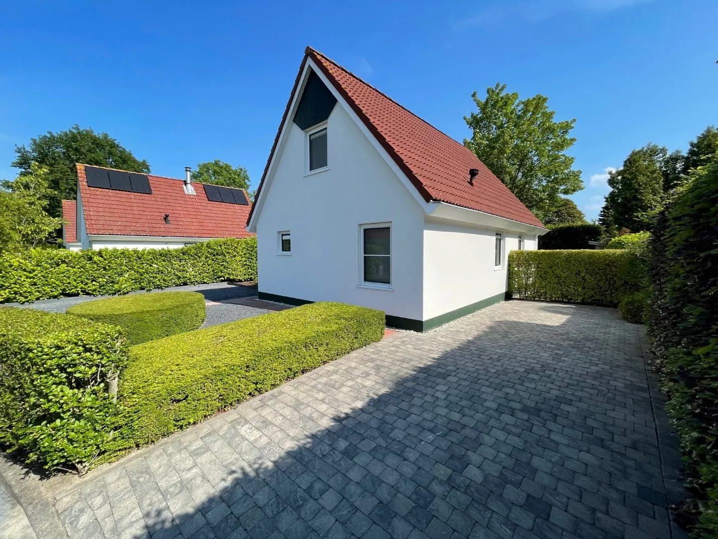 Vrijstaande goed onderhouden recreatiewoning (bj. ca. 1995) gelegen aan het einde van een doodlopende straat rustig gelegen in park ‘’Deltona’’ te Kortgene .