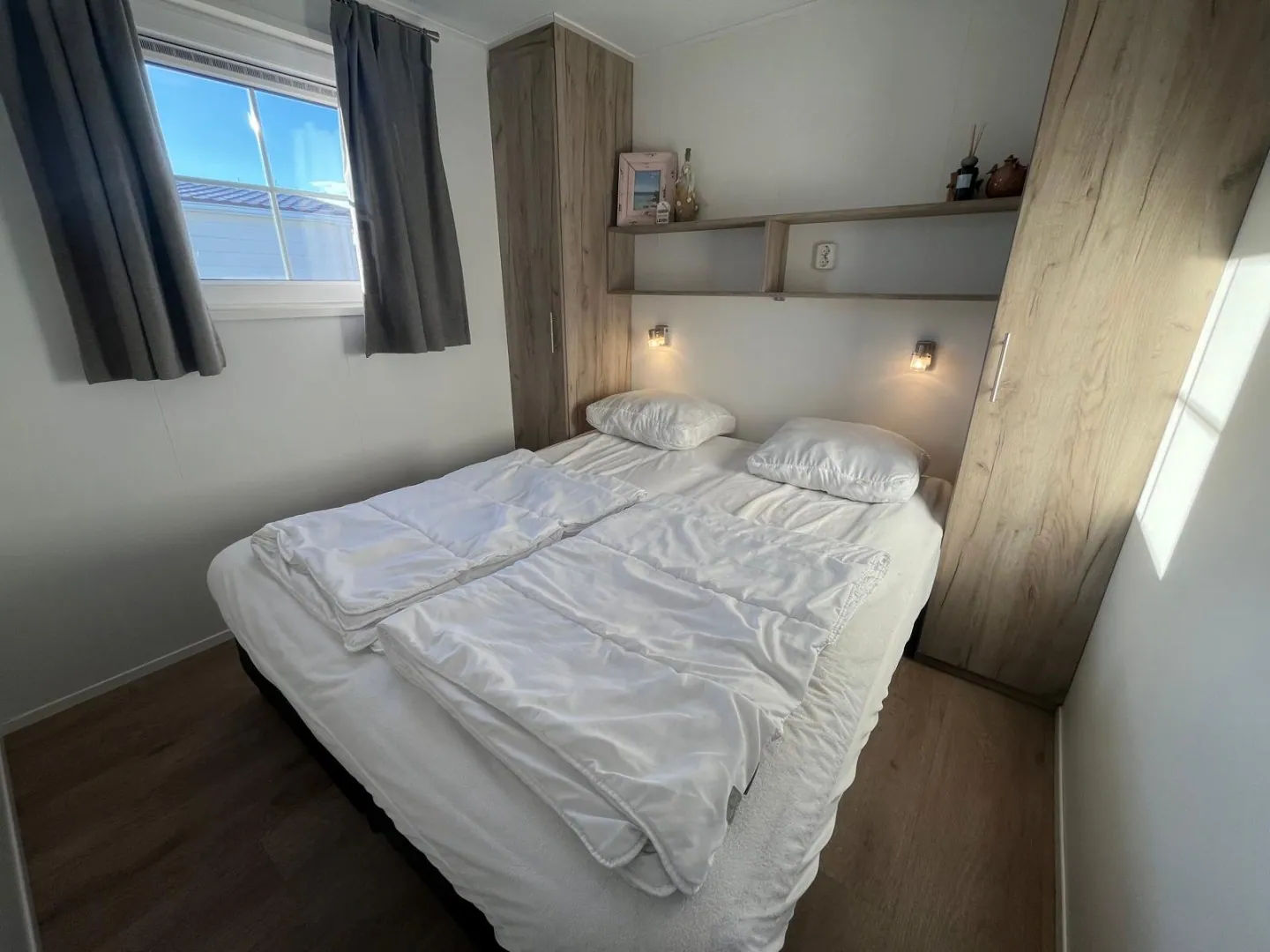 2 slaapkamers beiden voorzien van 2 1-persoonsbedden beiden met vaste kastruimte.