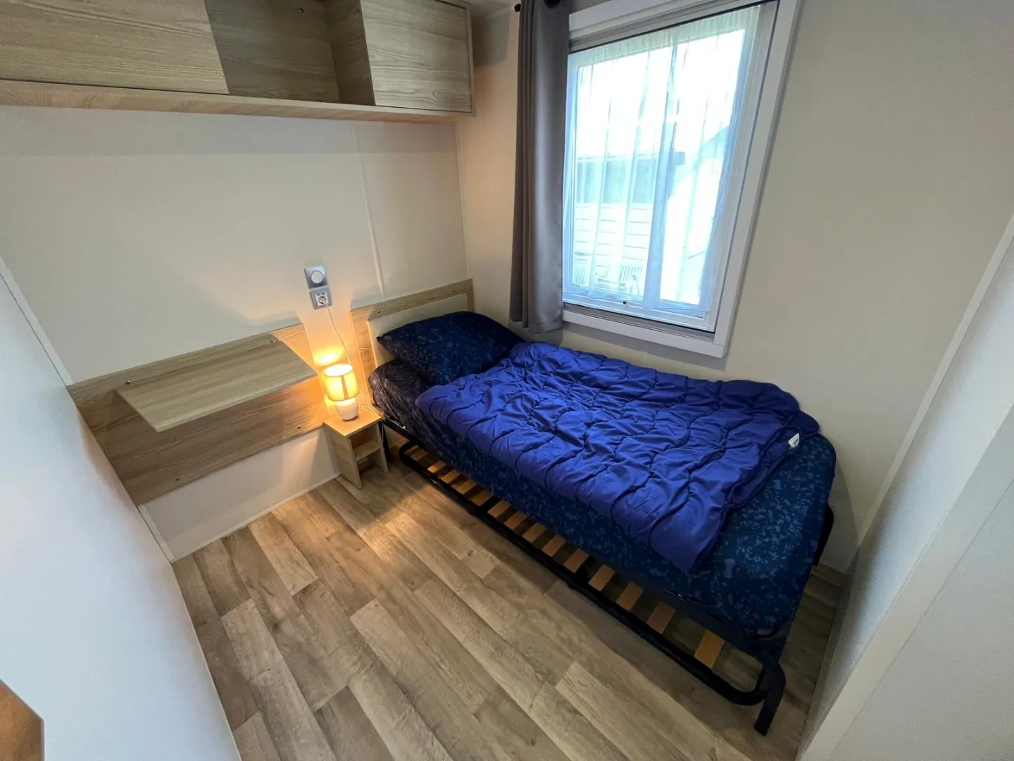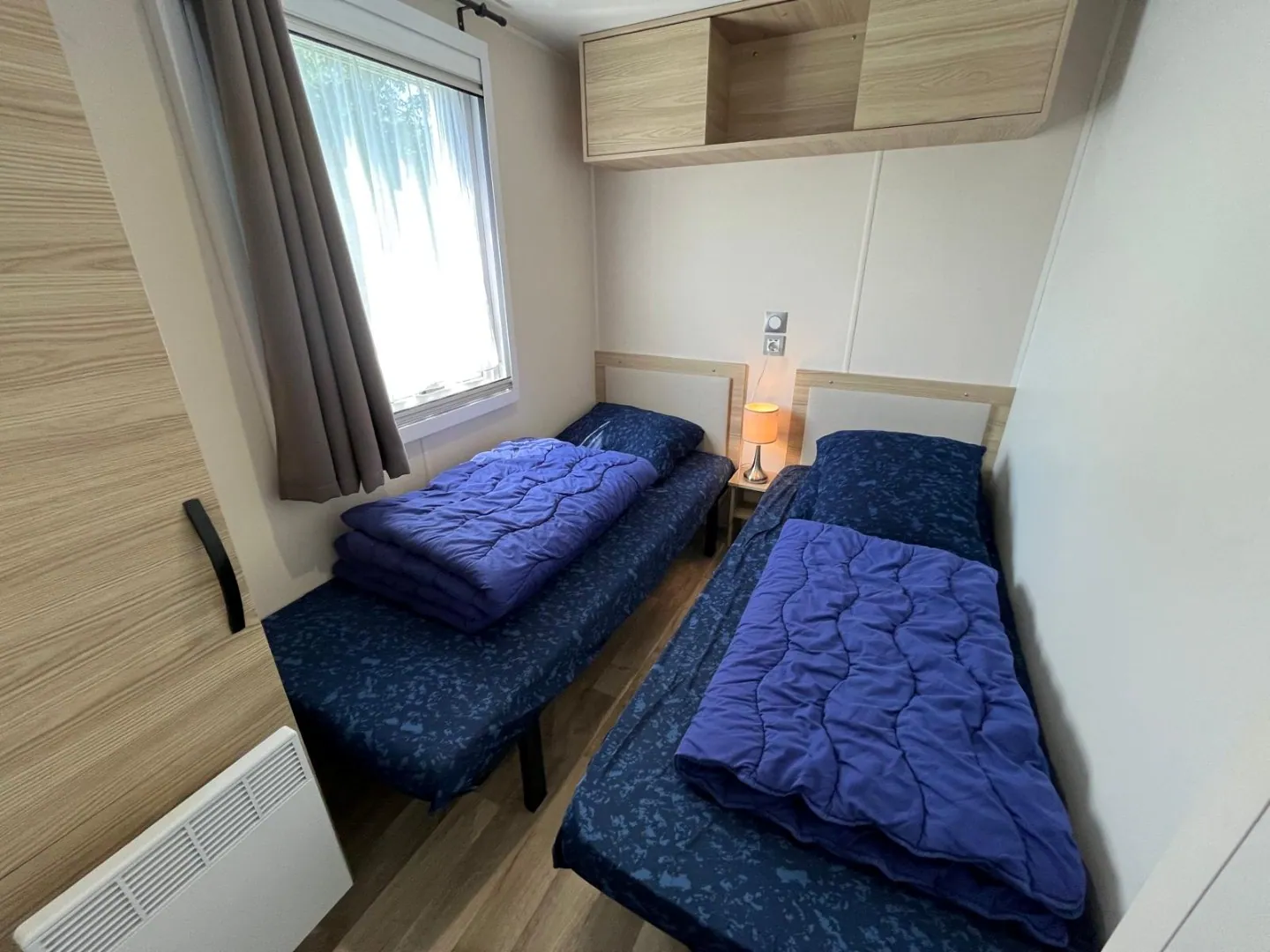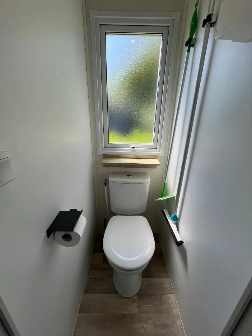 2 slaapkamers en apart toilet. Badkamer met wastafel en inloopdouche. Ouderslaapkamer met aansluitend een 2e badkamer, voorzien van wastafel, inloopdouche en 2e toilet. Het chalet is volledig compleet ingericht.