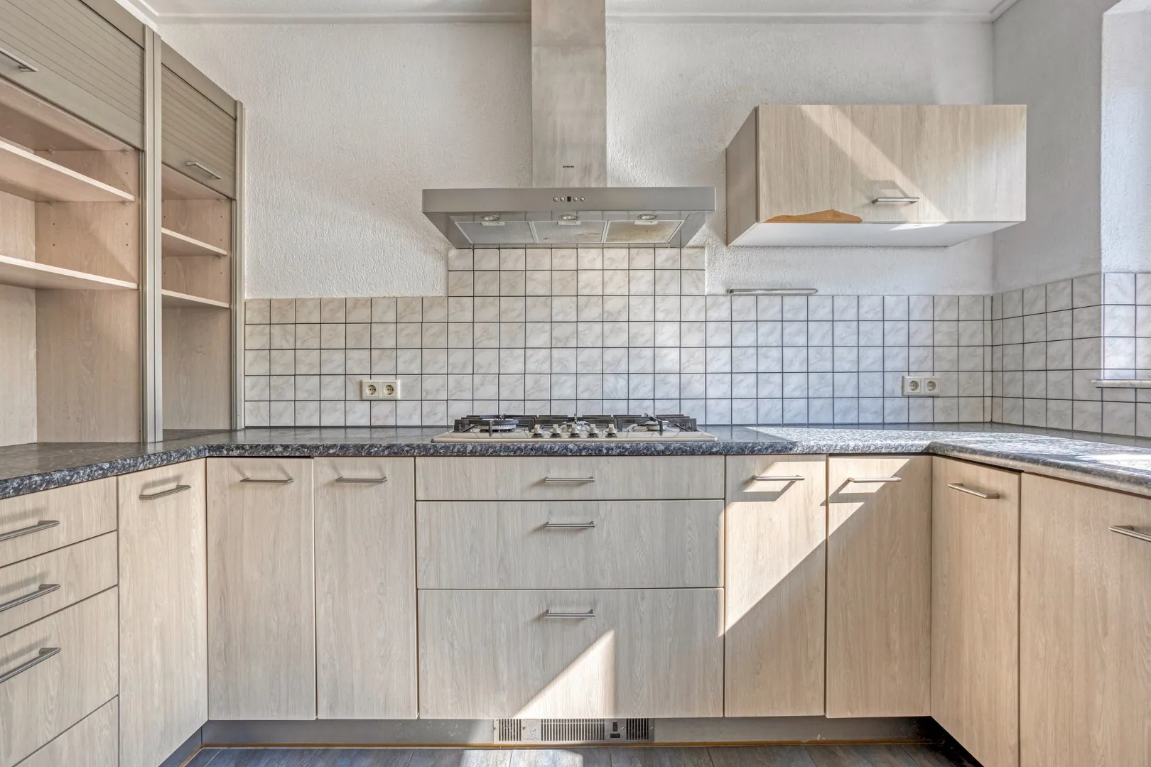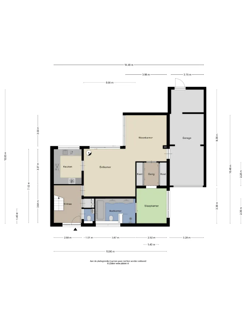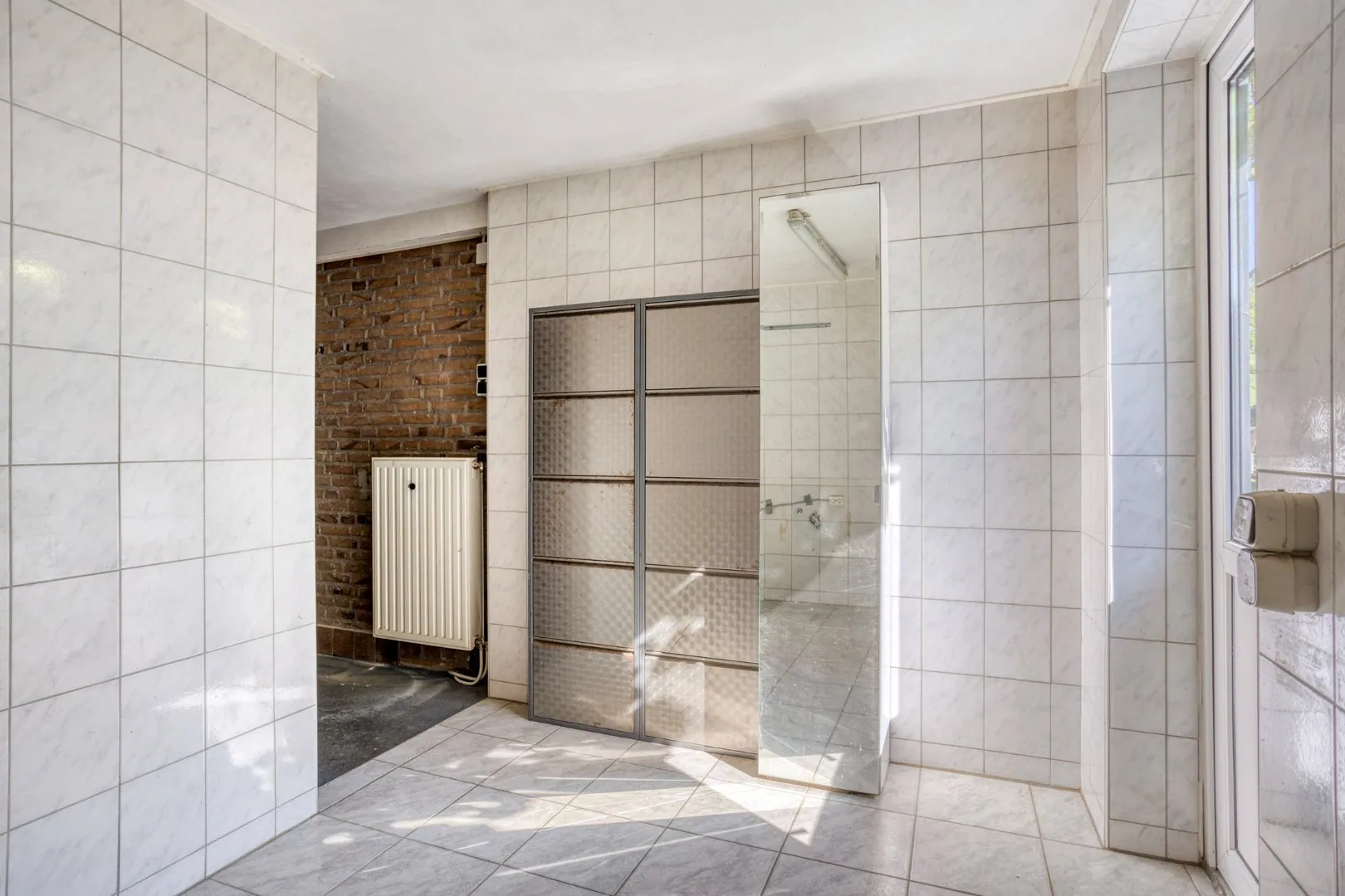 Vanuit de eetkamer is de extra grote garage te bereiken. Deze is o.a. voorzien van een elektrische sectionaaldeur met aan de achterzijde een nog in te delen bijkeuken met loopdeur naar de achtertuin.