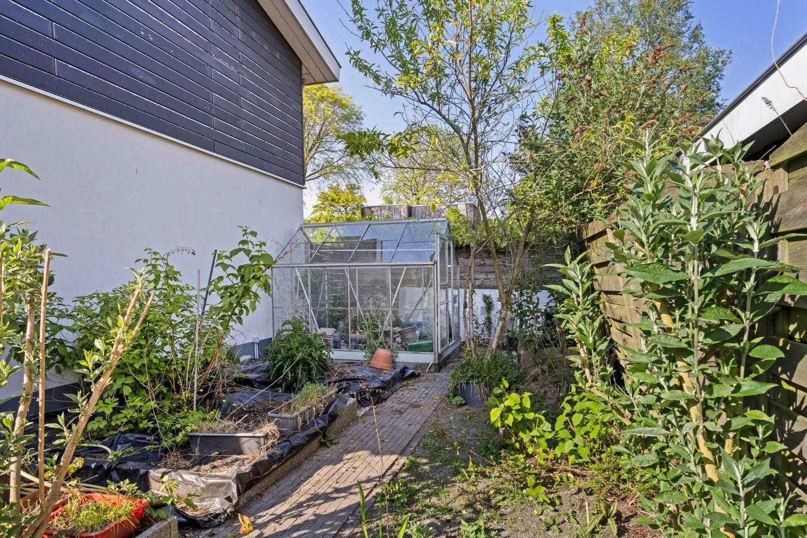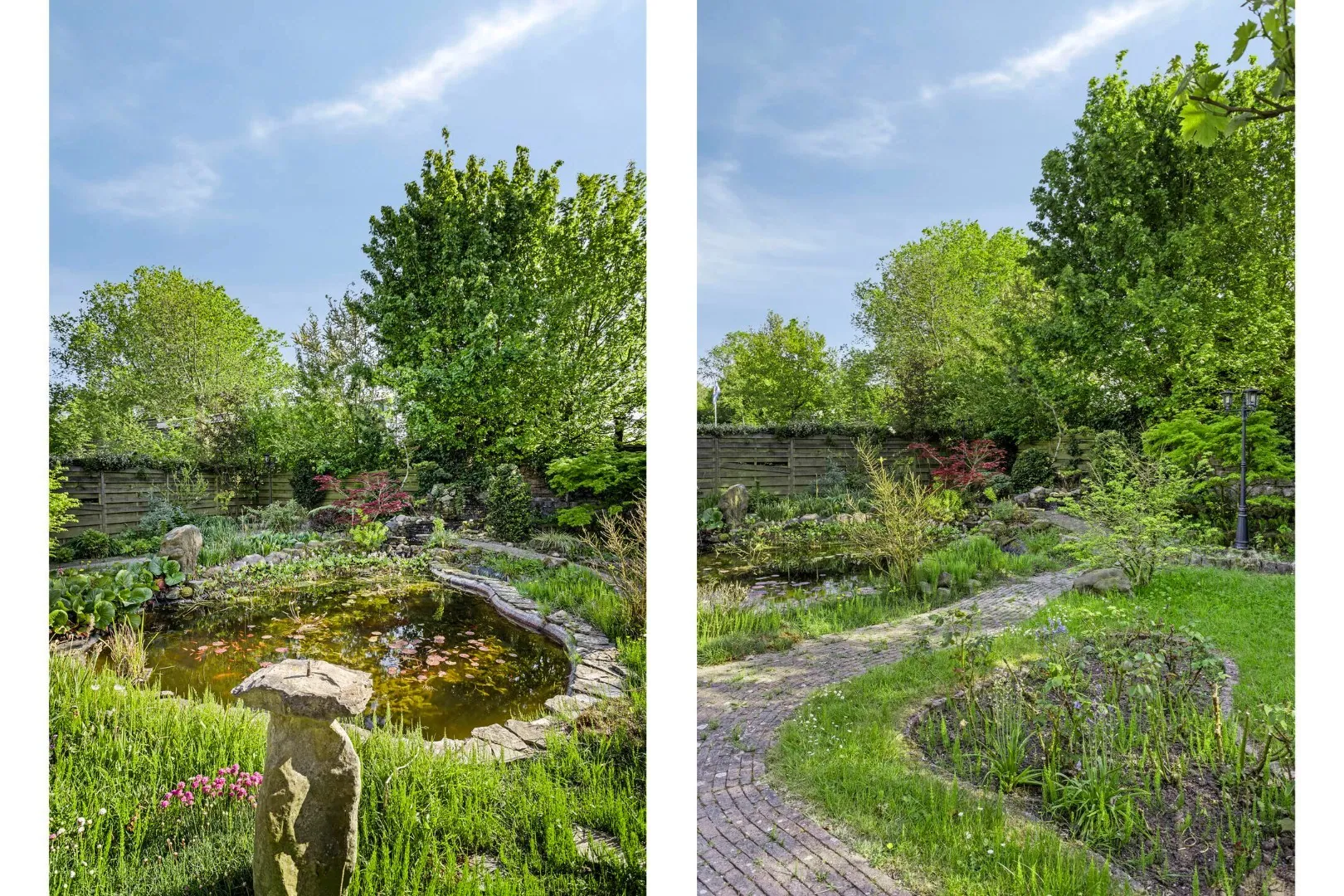Heerlijk zonnig gelegen tuin rondom met houten tuinhuis. De achtertuin heeft een vijver met watervalletje en leuk wandelpaadje. Er is een privé oprit voor meerdere auto’s.